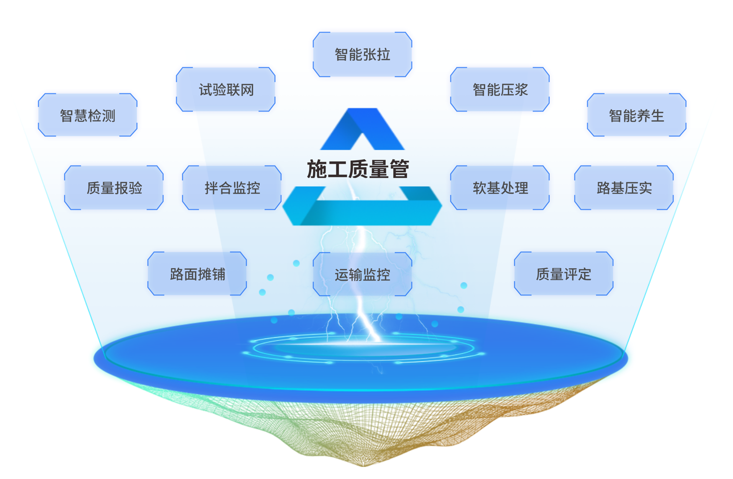 質(zhì)量管控系統(tǒng)建立了一套涵蓋路基施工、路面施工、預(yù)制構(gòu)件加工等全方位的完整的質(zhì)量管理體系。通過物聯(lián)網(wǎng)傳感設(shè)備,將